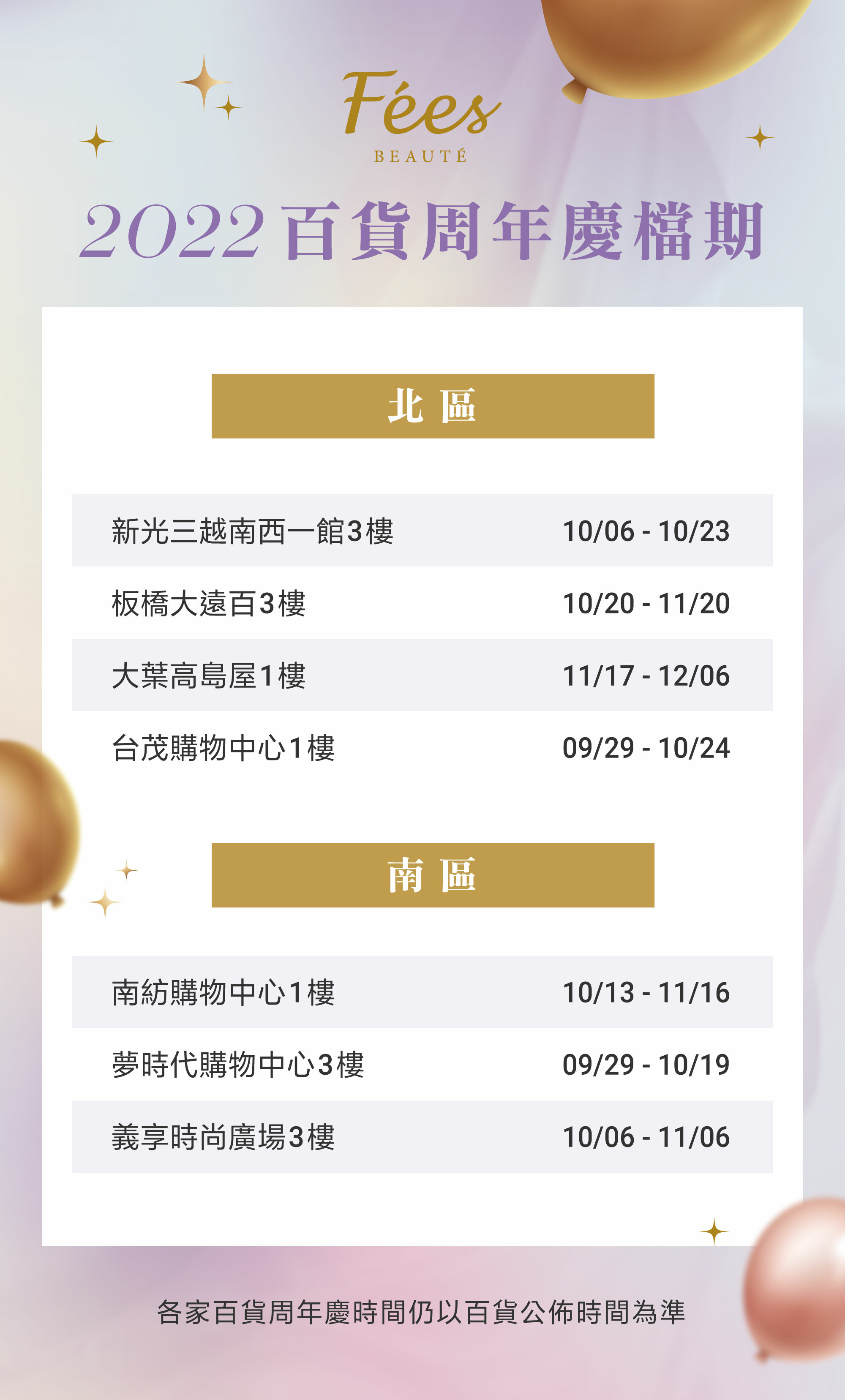 百貨周年慶時間表