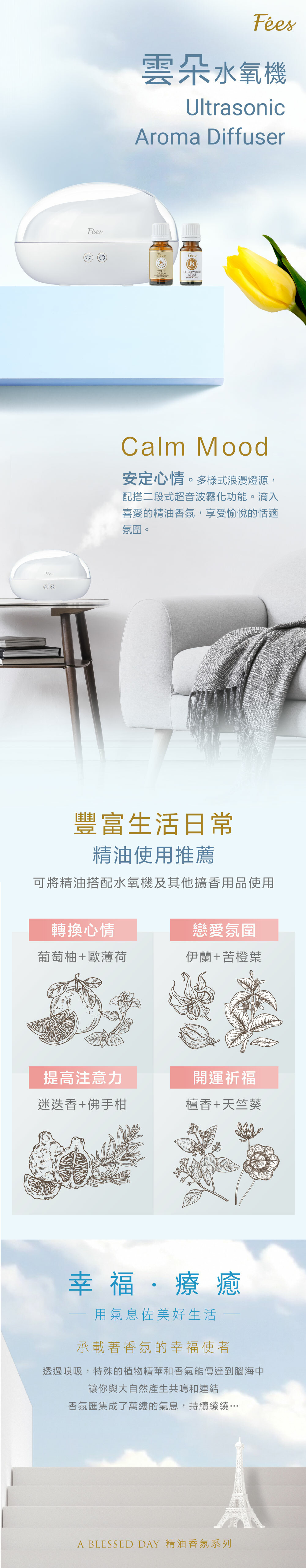 多樣式浪漫燈源,配搭二段式超音波霧化功能。滴入喜愛的精油香氛,平衡空間濕度並享受愉悅的恬適氛圍。