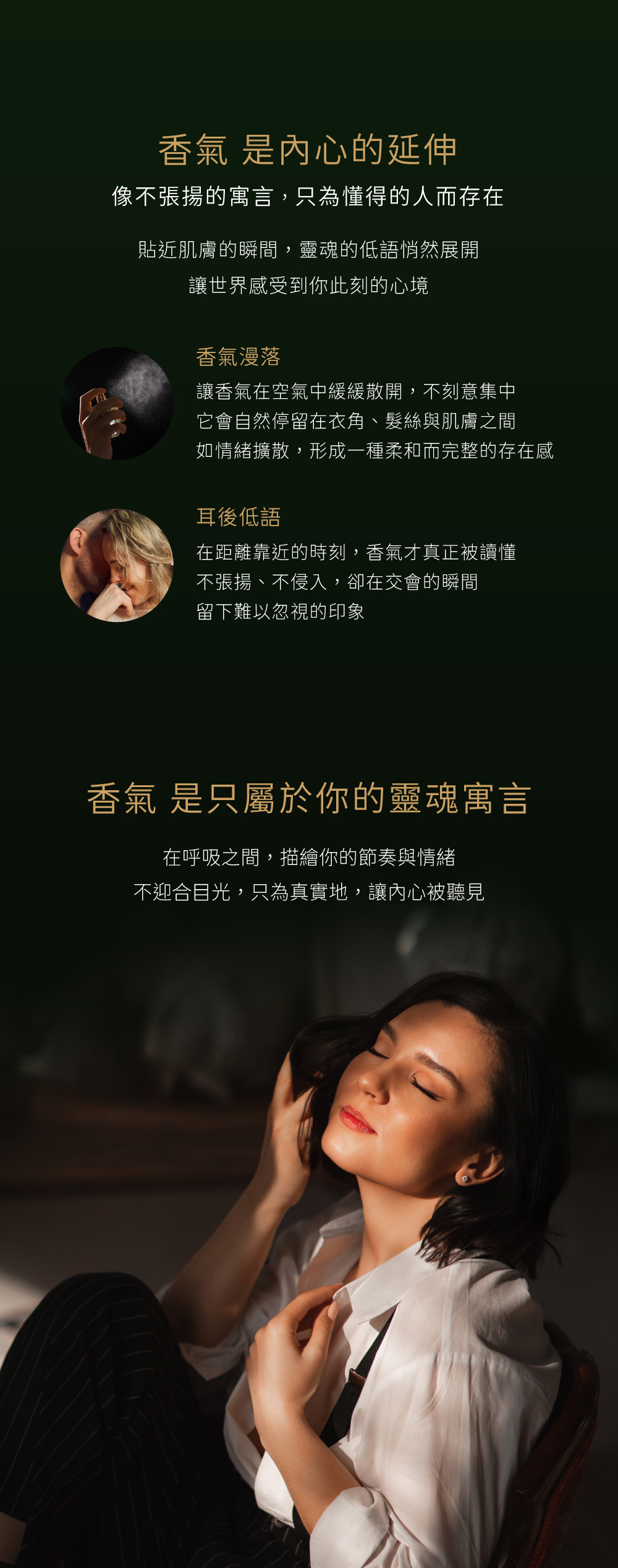 基調|琥珀 × 檀香 × 麝香 → 靈魂觸碰的神秘與餘韻。