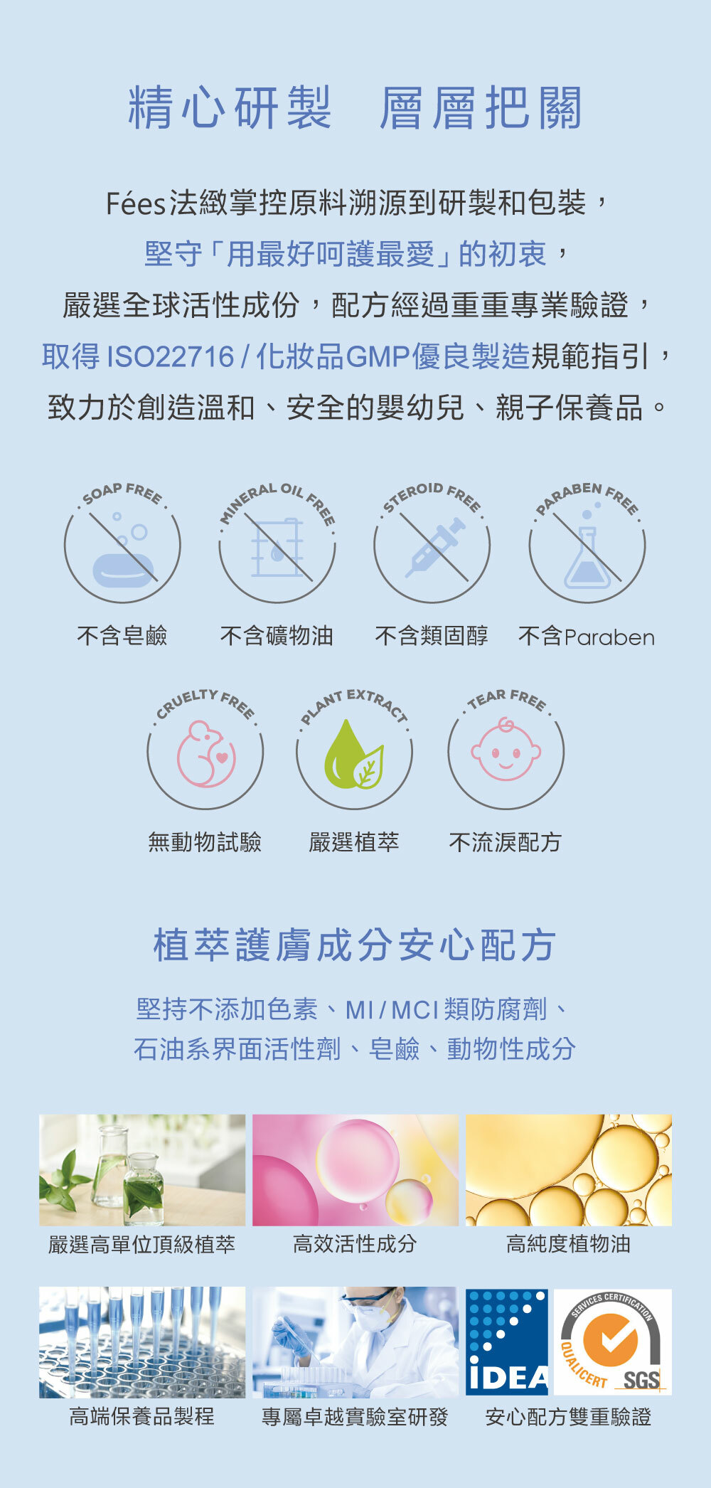 不含硫酸鹽類界面活性劑與Paraben型防腐劑,溫和洗後肌膚柔嫩不乾澀