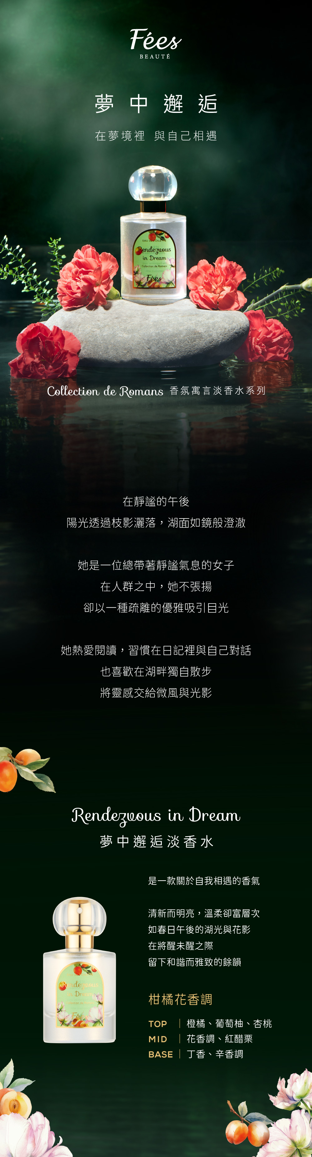前調|橙橘 × 葡萄柚 × 杏桃 → 清新無塵的開始,宛如午後第一縷微風。