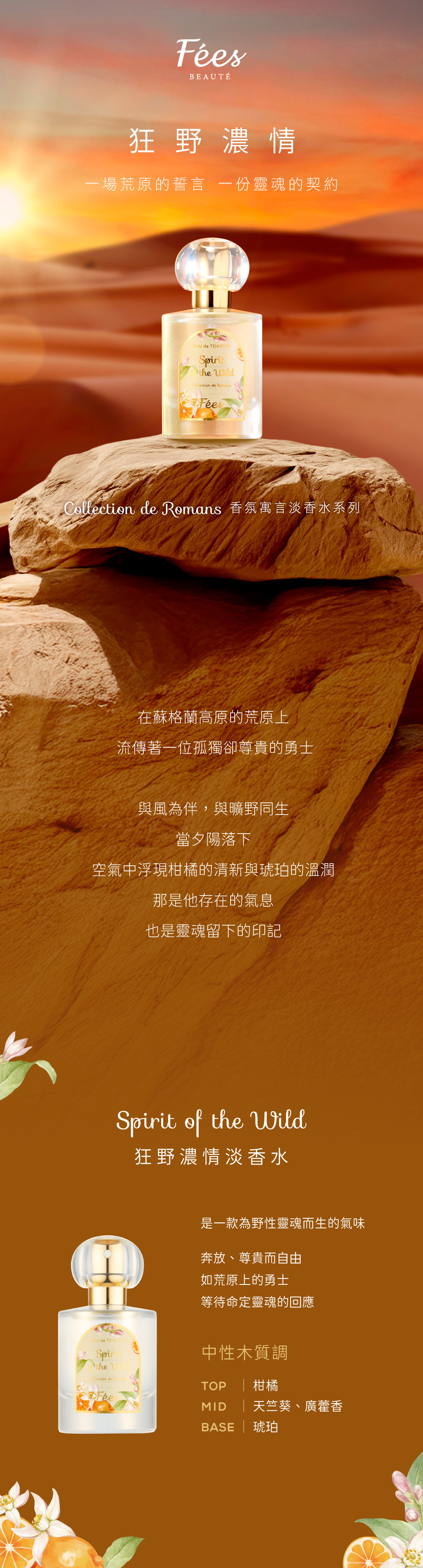 光明乍現,荒原再度瀰漫著柑橘與琥珀的氣息,交織木質與花草,留下一場狂野濃情的印記。