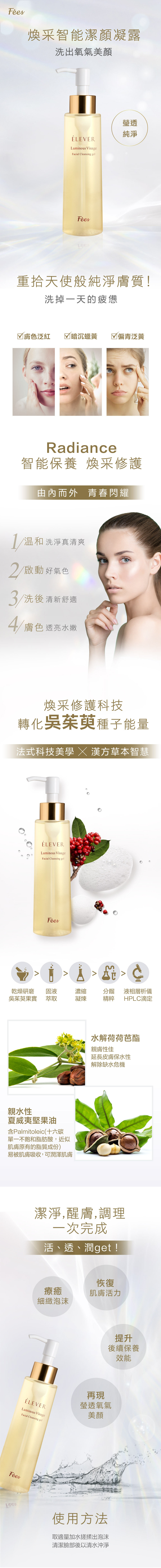 搭載獨家Radiance煥采修護科技,重啟肌底智能發電機,促進微循環、提升養分輸送效率,同步潤澤、舒緩乾荒膚況,讓洗後肌膚澄淨、透亮。