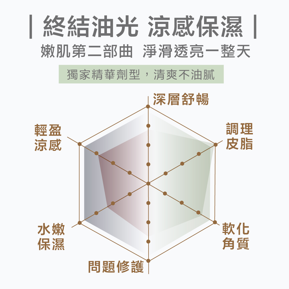專為混合偏油、油性肌膚量身打造,特別適合有毛孔粗大、粉刺痘痘、肌膚粗糙困擾者